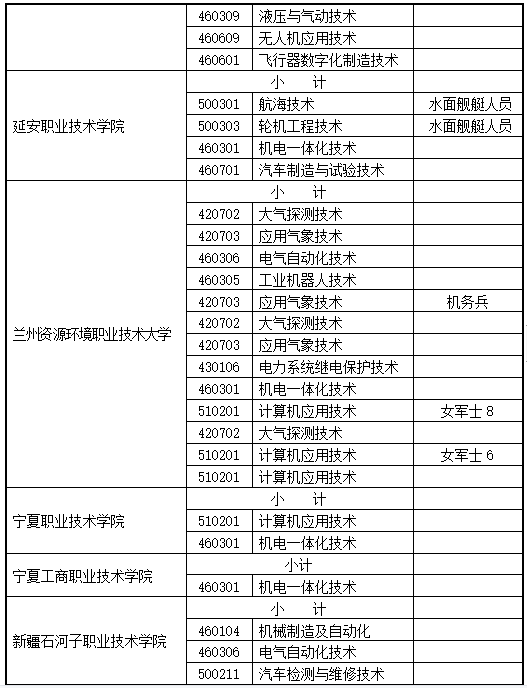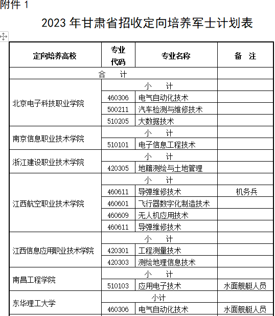 1.2023年甘肅省招收定向培養(yǎng)軍士計(jì)劃表