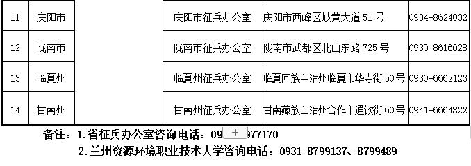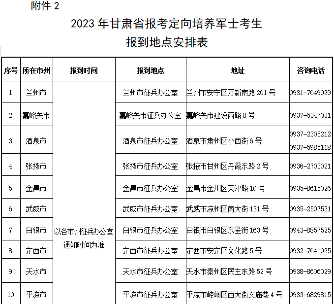 2.2023年甘肅省報(bào)考定向培養(yǎng)軍士考生報(bào)到地點(diǎn)安排表