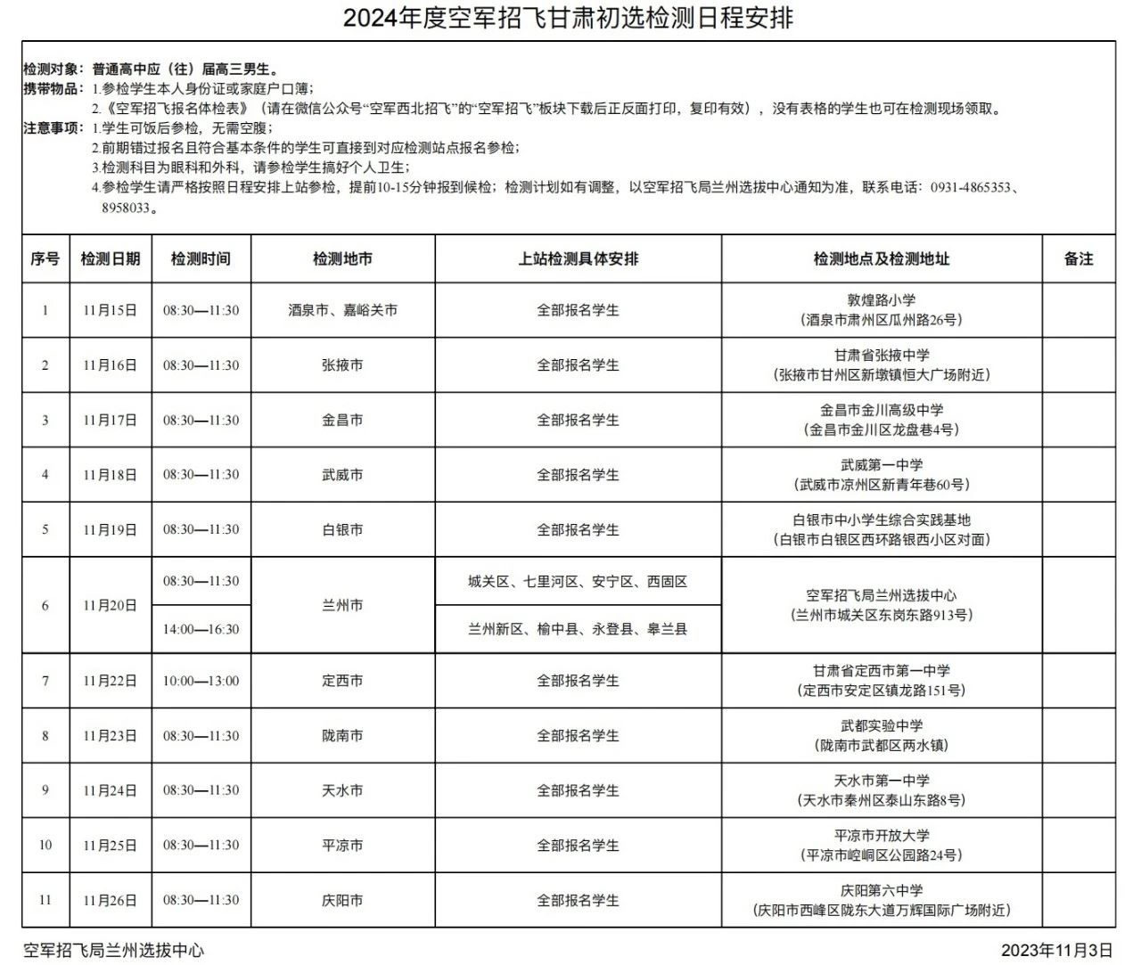 2024年度空軍招飛甘肅初選檢測(cè)日程安排