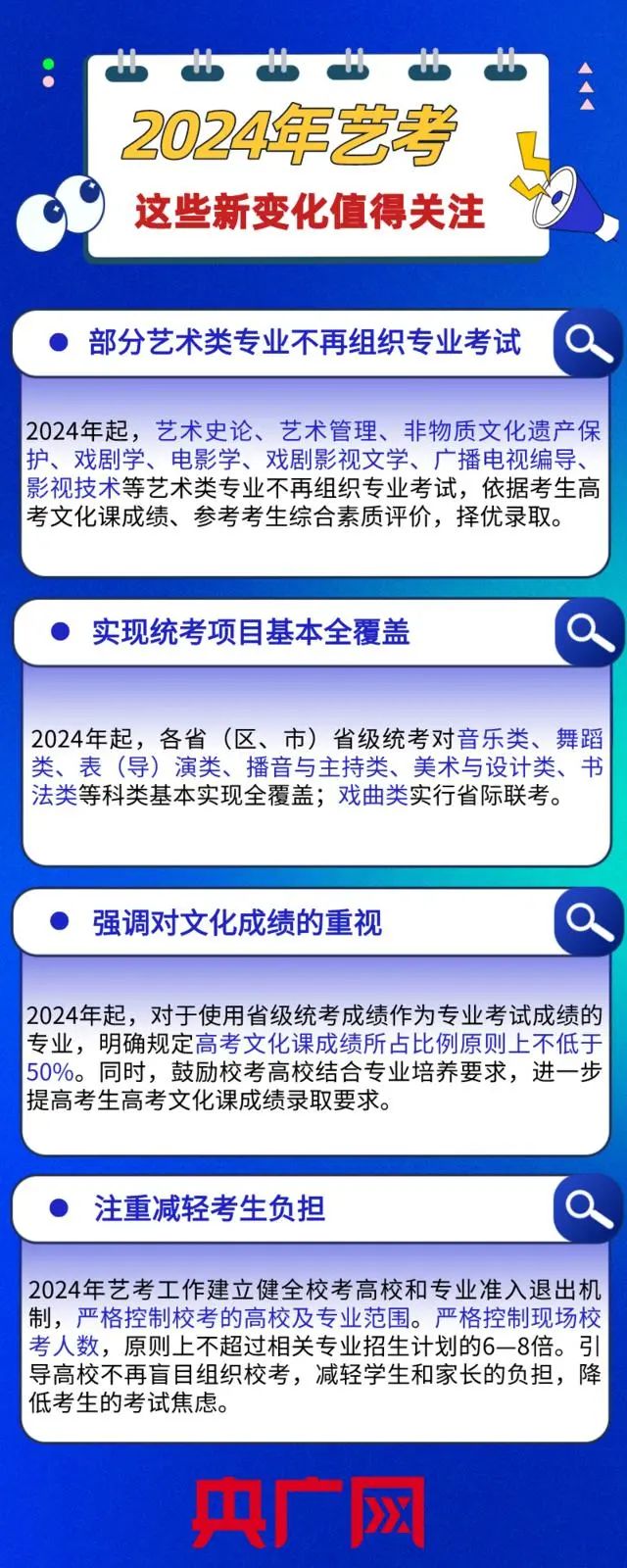 日前,教育部辦公廳印發(fā)了《關(guān)于做好2024年普通高等學(xué)校部分特殊類(lèi)型招生工作的通知》(以下簡(jiǎn)稱(chēng)《通知》),《通知》對(duì)2024年高校藝術(shù)類(lèi)專(zhuān)業(yè)招生工作作出詳細(xì)部署。藝考是藝術(shù)類(lèi)人才培養(yǎng)的重要起點(diǎn)。和往年相比,2024年藝考有哪些新變化?戳圖了解↓