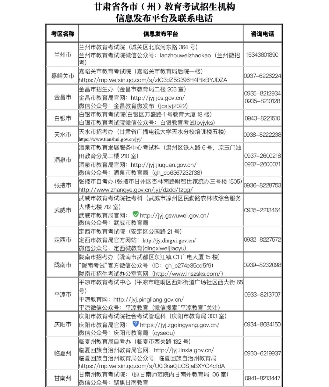 3.甘肅省各市(州)教育考試招生機構信息發(fā)布平臺及聯(lián)系電話