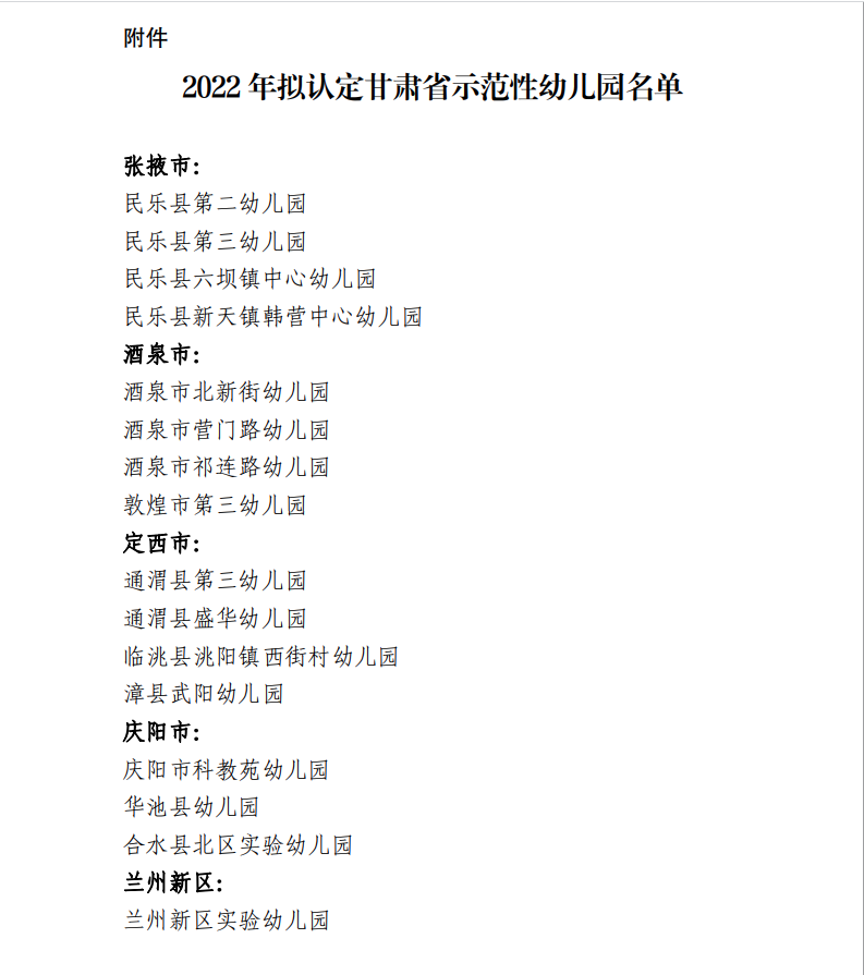 附件:2022年擬認定甘肅省示范性幼兒園名單