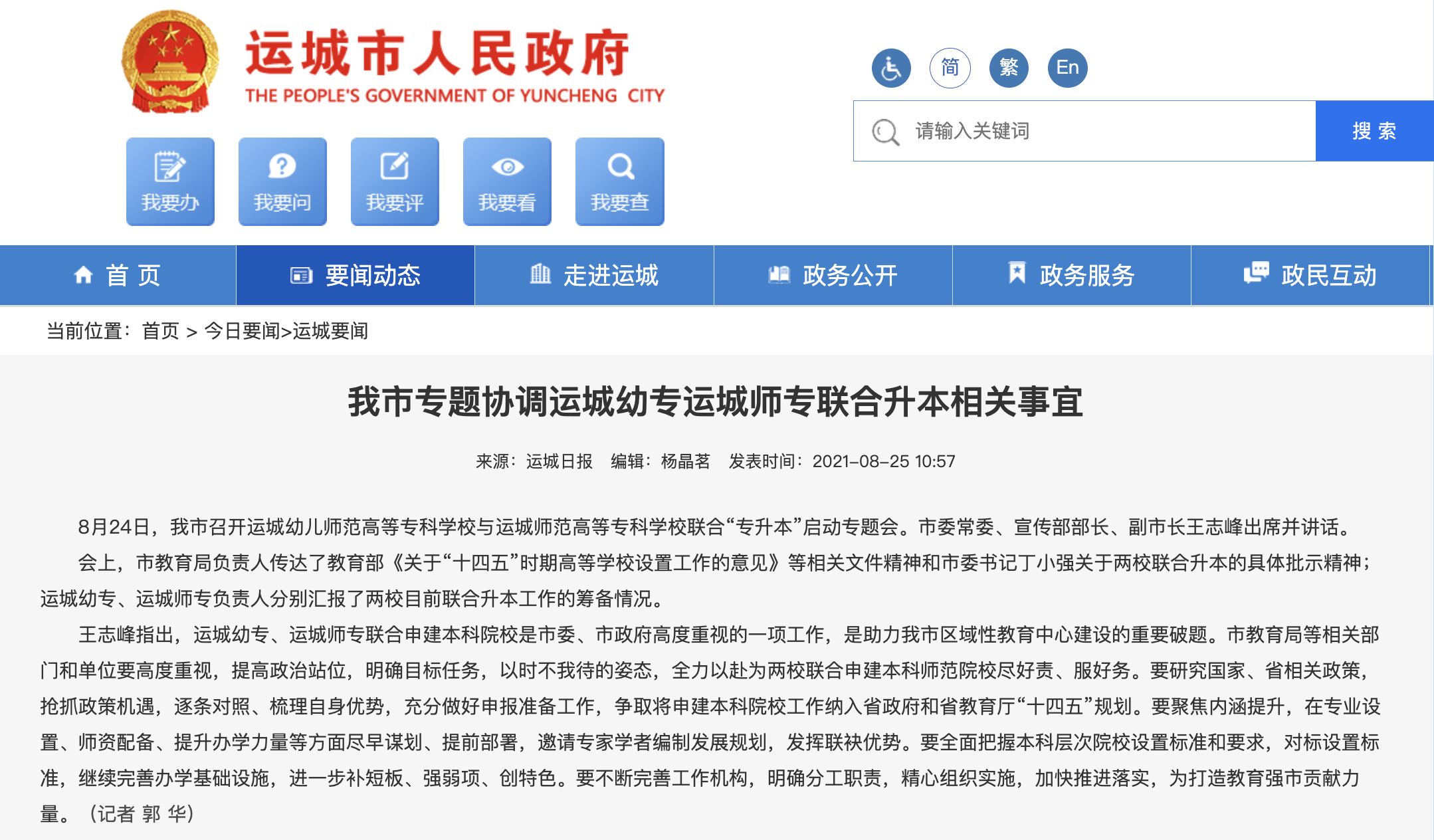 2021年8月,山西運城市則曾召開運城幼兒師范高等??茖W(xué)校與運城師范高等??茖W(xué)校聯(lián)合“專升本”啟動專題會。運城市委副市長王志峰指出,運城幼專、運城師專聯(lián)合申建本科院校是市委、市政府高度重視的一項工作,是助力運城市區(qū)域性教育中心建設(shè)的重要破題。
