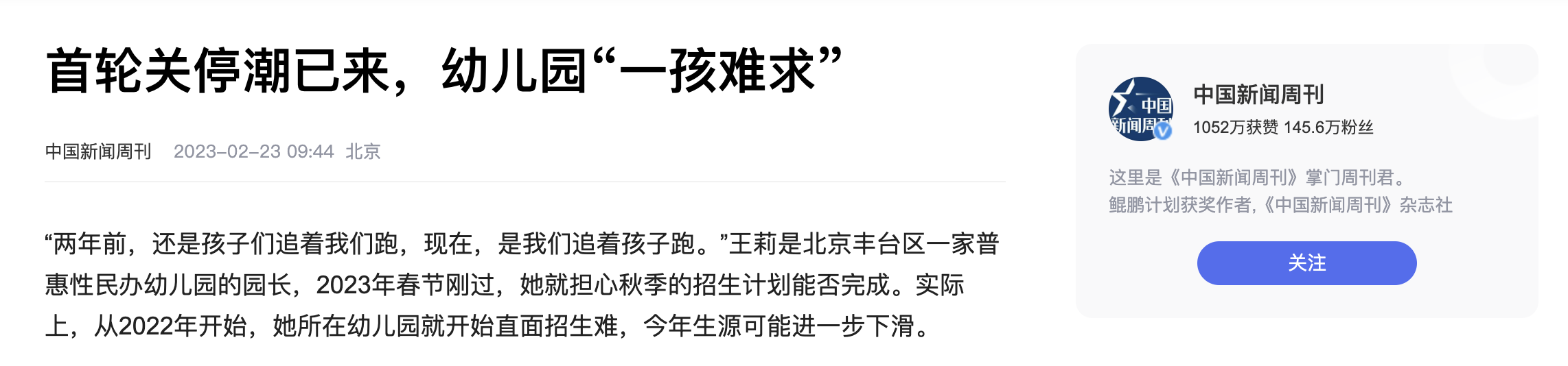 出生人口減少的寒氣,已悄然侵襲幼兒園。2022年,我國幼兒園數(shù)量減少5000多所,這是近15年來全國幼兒園數(shù)量首次負(fù)增長。