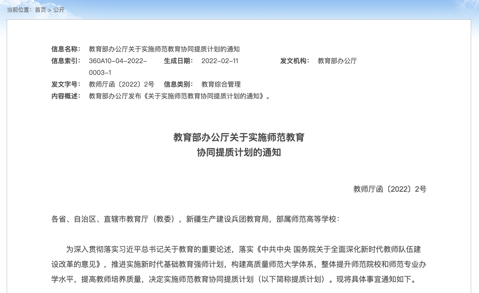 圖 | 師范教育協(xié)同提質(zhì)計劃2022年5月,教育部開始實施師范教育協(xié)同提質(zhì)計劃,由北京師范大學(xué)、華東師范大學(xué)等10所“雙一流”高校牽頭、30所高校參與幫扶,重點支持32地方薄弱師范院校的發(fā)展,為師范院校的發(fā)展帶來了重大機(jī)遇。