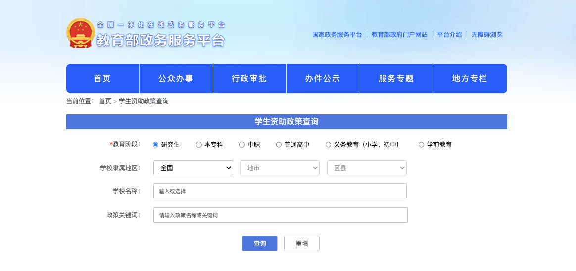 學(xué)生資助政策查詢服務(wù)頁(yè)面