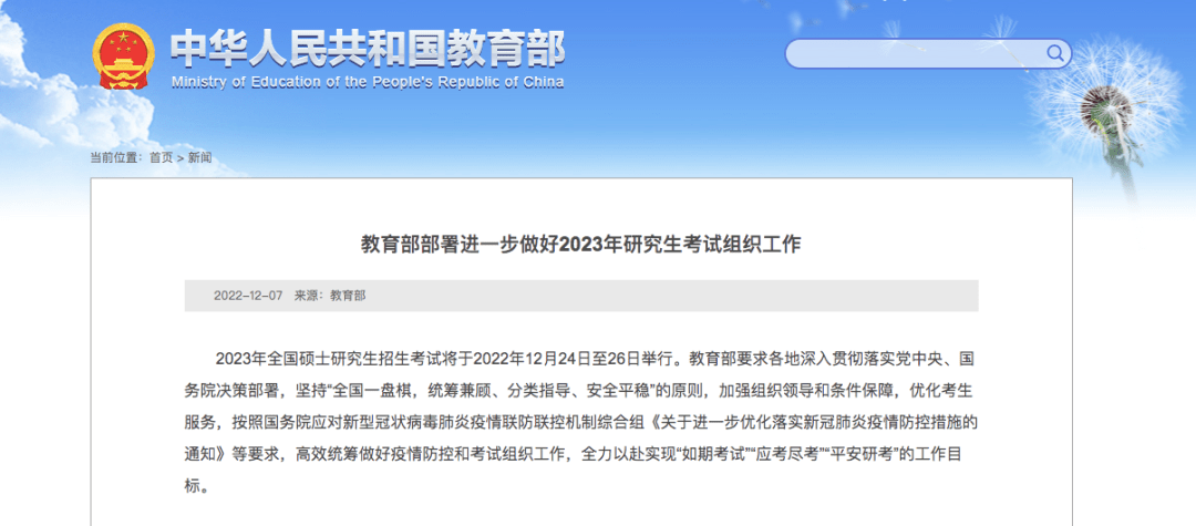 教育部表示,要堅持“全國一盤棋,統(tǒng)籌兼顧、分類指導(dǎo)、安全平穩(wěn)”的原則,加強組織領(lǐng)導(dǎo)和條件保障,優(yōu)化考生服務(wù),高效統(tǒng)籌做好疫情防控和考試組織工作,全力以赴實現(xiàn)“如期考試”“應(yīng)考盡考”“平安研考”的工作目標。