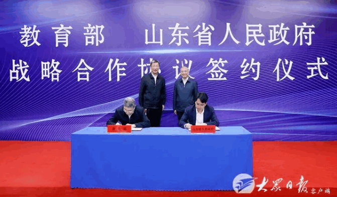 開幕式前,教育部與山東省人民政府簽署了戰(zhàn)略合作協(xié)議。儀式上,懷進鵬表示,山東全面貫徹黨的二十大精神,認真落實習(xí)近平總書記重要指示要求,錨定“走在前、開新局”目標(biāo),堅持把教育擺在優(yōu)先發(fā)展的戰(zhàn)略位置,深刻理解教育、科技、人才共同支撐推進中國式現(xiàn)代化的重要意義,不斷推動教育在改革中加強、在創(chuàng)新中發(fā)展,各級各類教育發(fā)展水平邁上新的臺階。教育部愿與山東以落實部省戰(zhàn)略合作協(xié)議為契機,同題共答、同向同行,在推進現(xiàn)代職業(yè)教育體系建設(shè)改革中打造山東亮麗名片,在深化高等教育綜合改革中支持山東先行先試,推動產(chǎn)教深度融合,強化校企深度合作,支持社會政策深度轉(zhuǎn)型,大力培養(yǎng)與產(chǎn)業(yè)緊密對接的高水平技術(shù)人才和行業(yè)緊缺人才,全面提高人才自主培養(yǎng)質(zhì)量,充分發(fā)揮教育服務(wù)國家戰(zhàn)略和支撐區(qū)域經(jīng)濟社會發(fā)展的重要作用,使山東教育成為改革發(fā)展和對外合作的先鋒和示范。